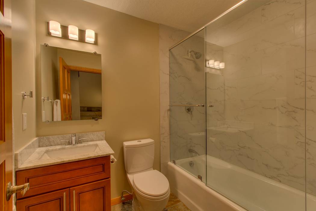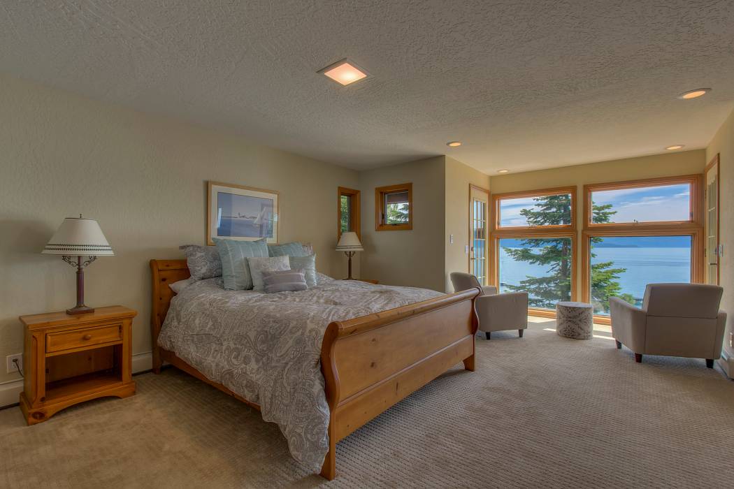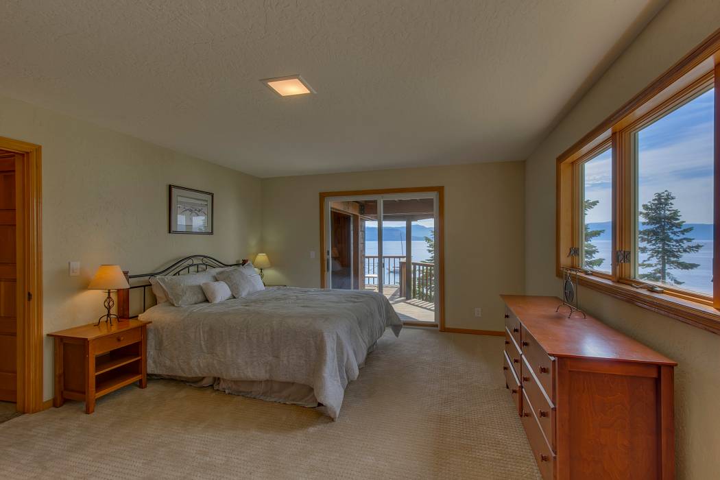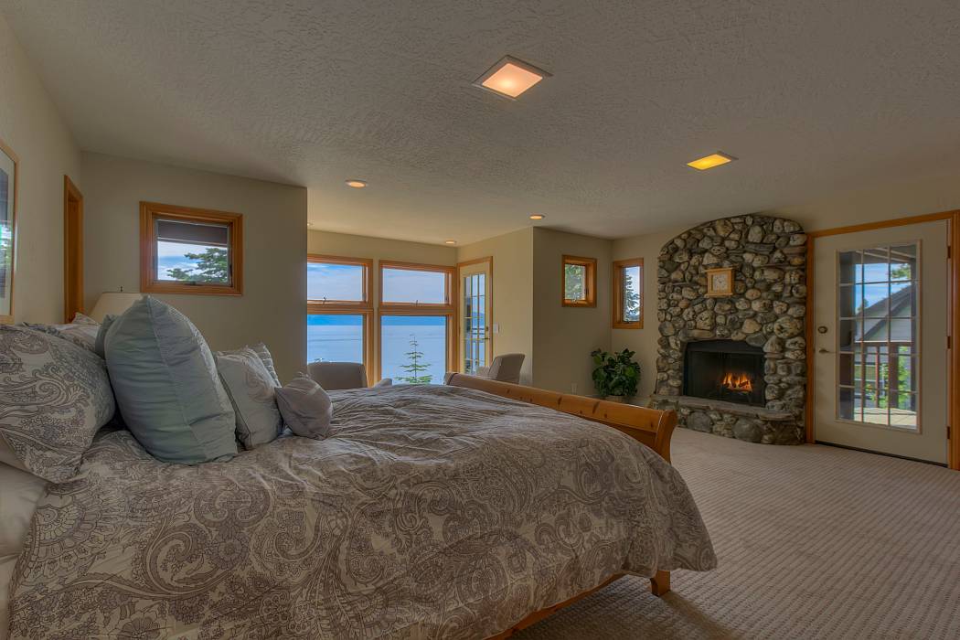 Downstairs, luxuries abound. All bedrooms have decks to maximize lakeside relaxation. The master suite includes a fireplace and a master bath with a double shower that pampers with four shower heads. Soak in the hot tub overlooking Lake Tahoe. Or, unwind in the sauna with a convenient private shower.