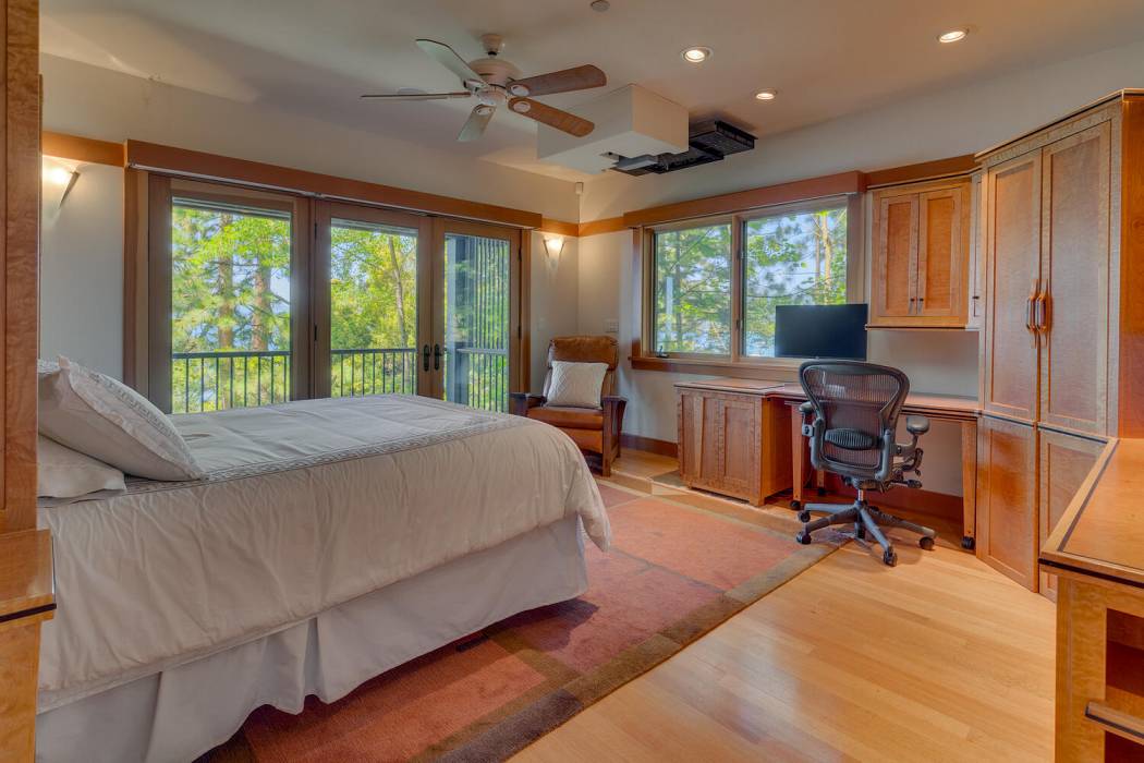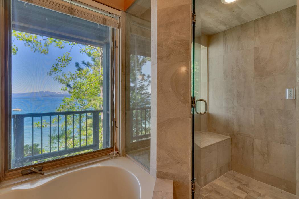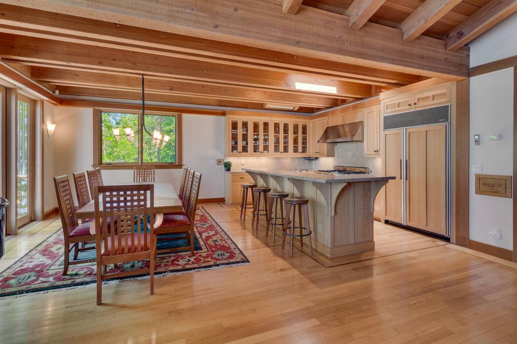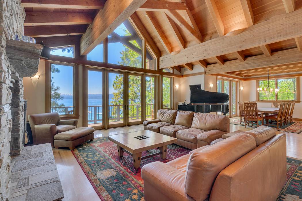 When you aren't enjoying immediate lake access and the community amenities or hosting your guests, you will appreciate the peace you will find in this comfortable setting. Floor-to-ceiling windows showcase views of Lake Tahoe. Intricate beam work, handmade ironworks, stained glass windows, stairs with custom-fit carpet, Douglas fir hardwood floors with custom trim and custom cabinetry throughout highlight the elaborate detail and care with which this home was built.