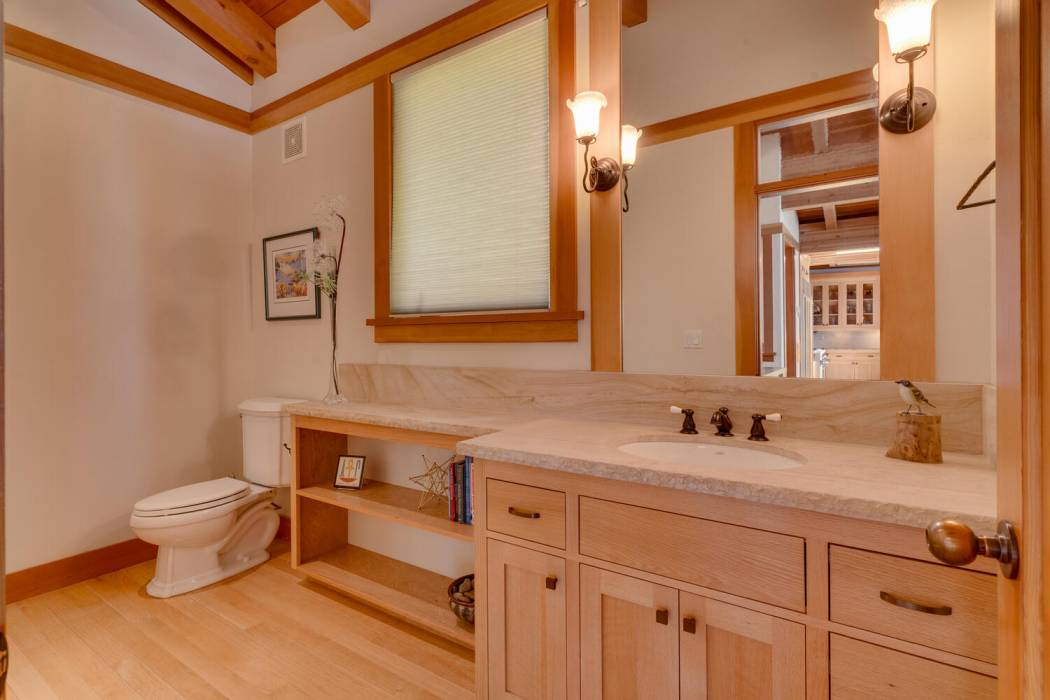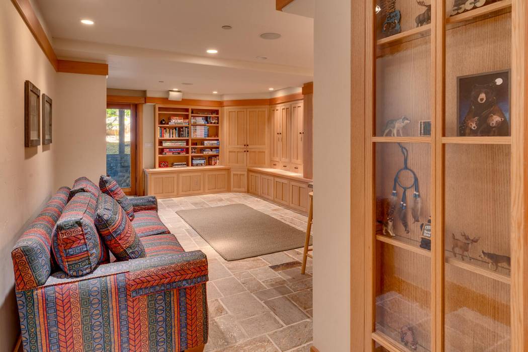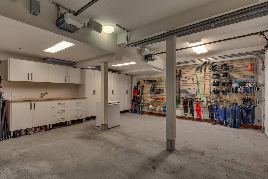 The garage includes built-in storage cabinets, a workstation with sink, and a wall of organizers, baskets and hooks, for all your Tahoe toys. An additional outdoor closet can house all your supplies. Storage at this home is truly unparalleled.