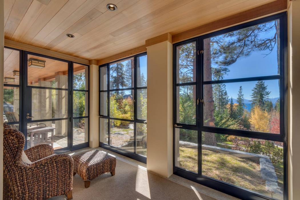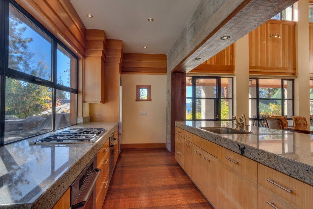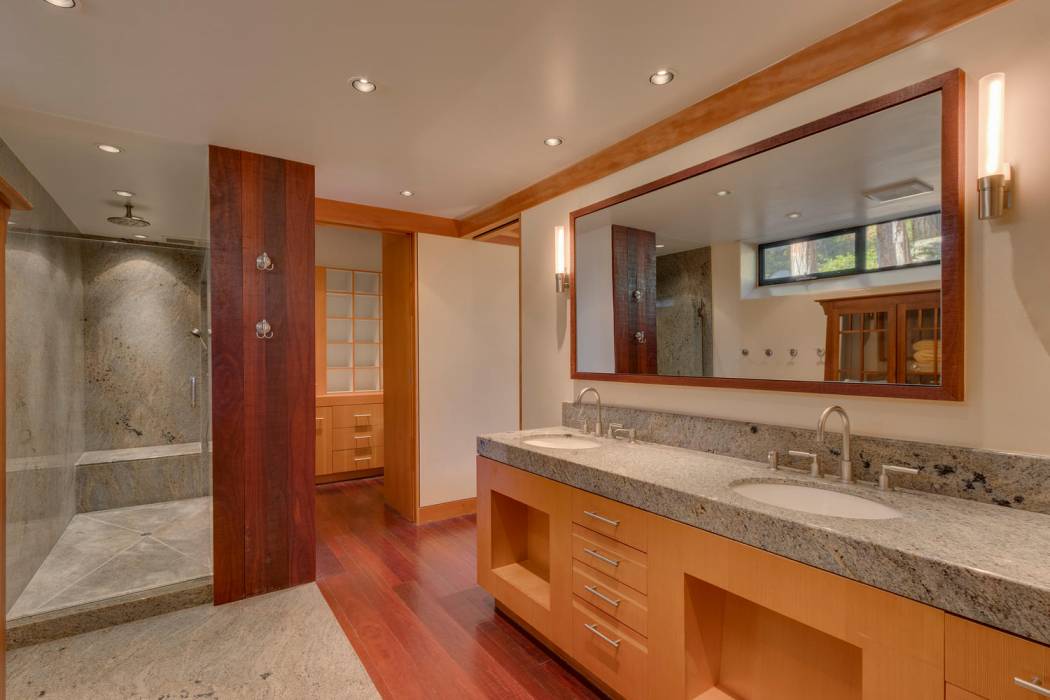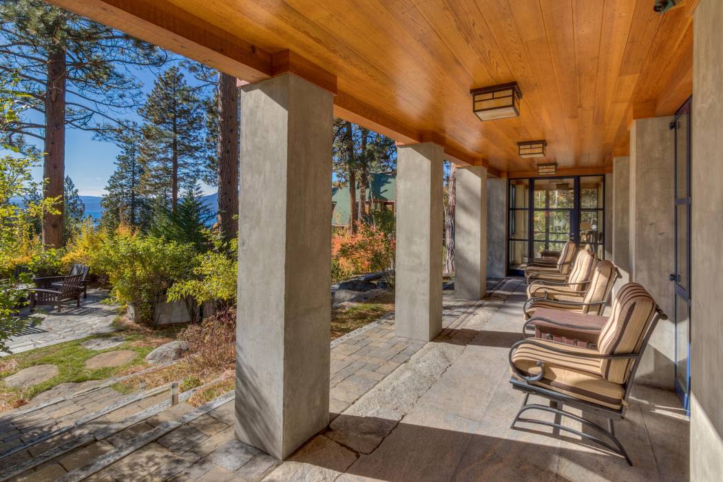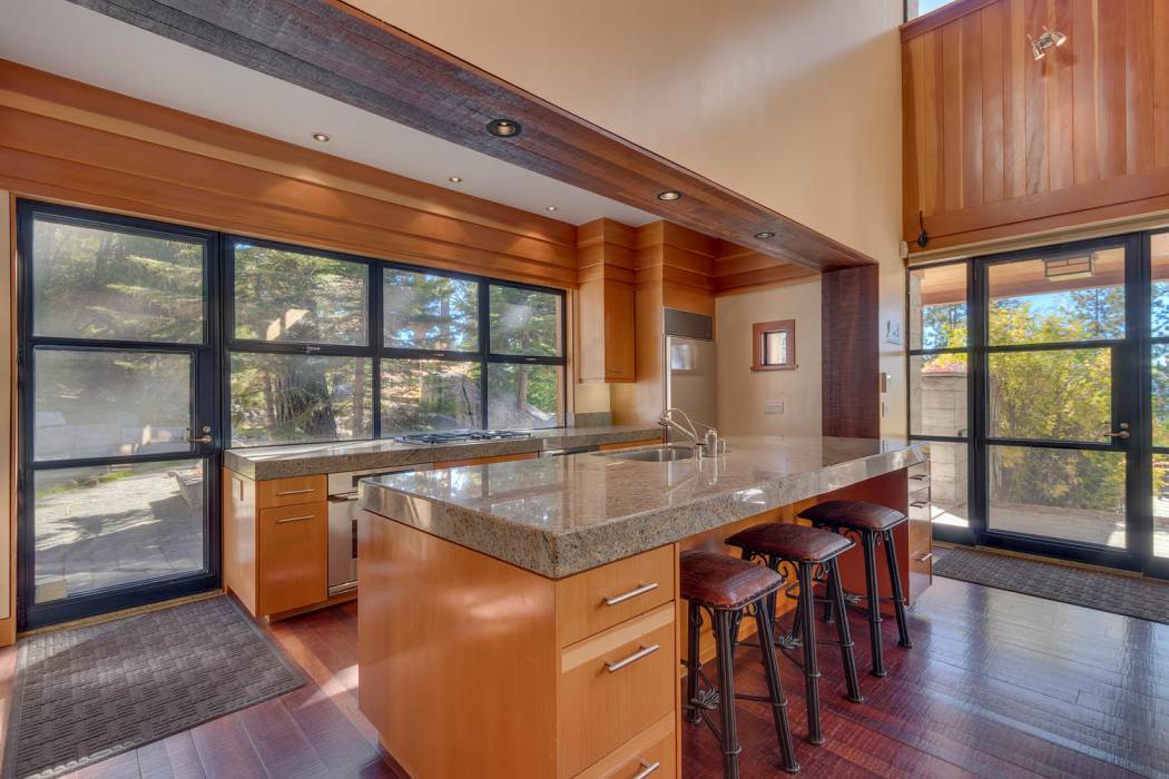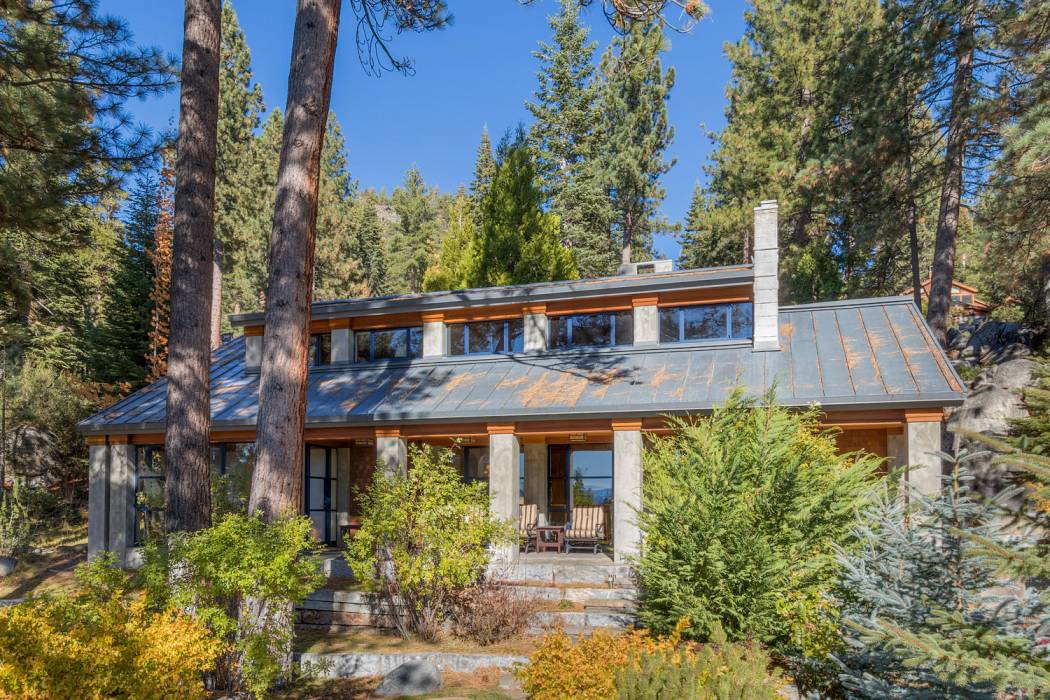 This stunning home in the coveted, gated community of Brockway Springs is a calming blend of contemporary styling set among large boulders and soaring trees. Lake views abound through the wall of windows. Intimate nooks of outdoor delight include a hot tub set within boulders, a covered porch, and a patio with a gas fire pit.