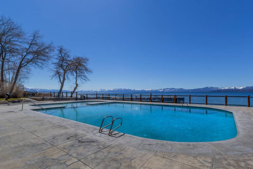 HOA amenities include a year-round swimming pool heated directly by natural hot springs, a children’s wading pool, tennis courts, a fitness room, saunas, clubhouse, and a pier, all beside the crystalline waters of beautiful Lake Tahoe.