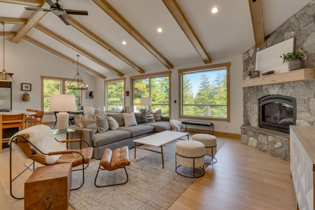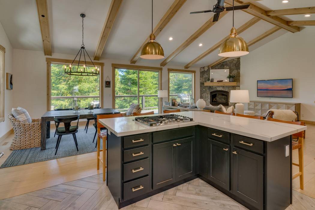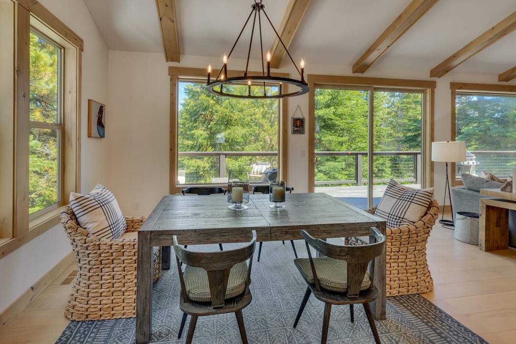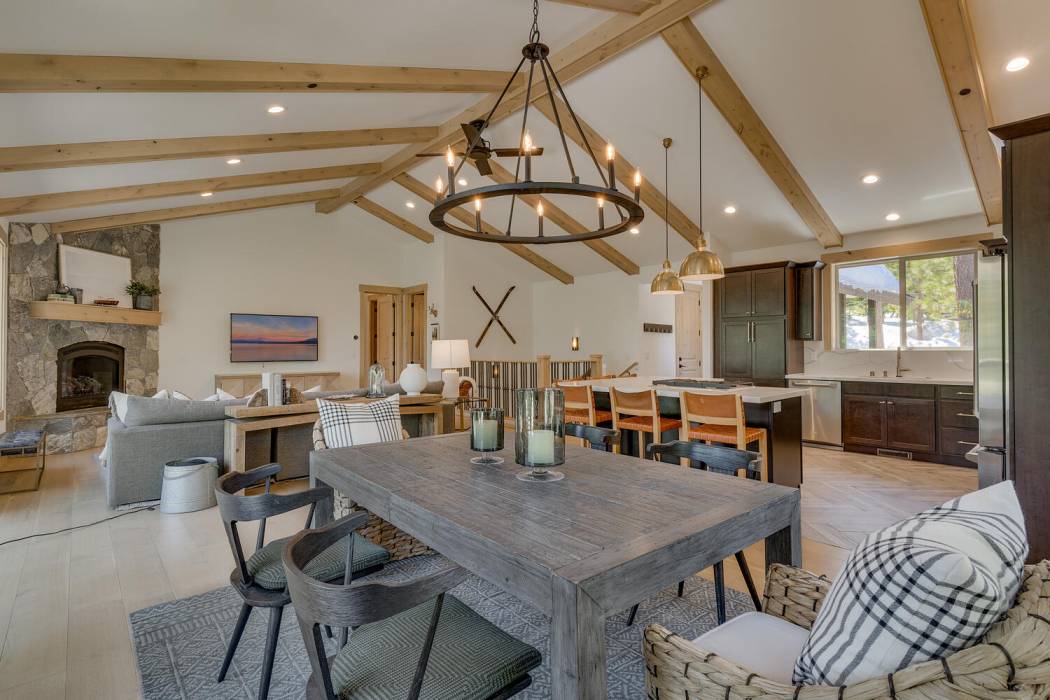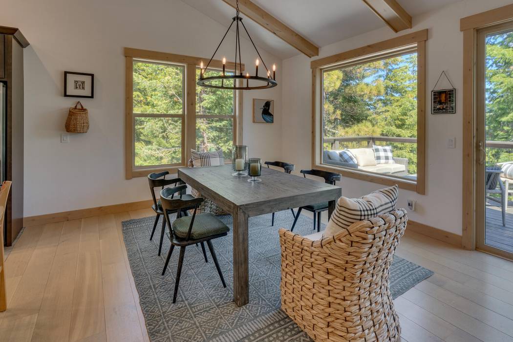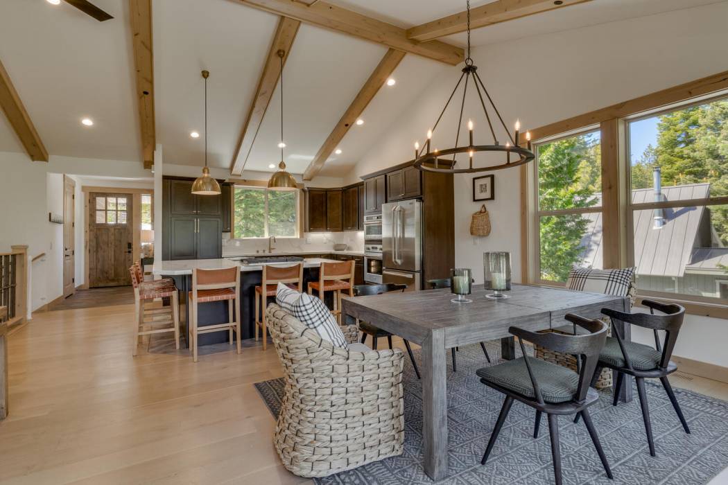 Experience the essence of Tahoe life at Camp Chinkapin. Situated in a peaceful neighborhood and surrounded by towering pines, this exquisitely designed luxury retreat invites you to immerse yourself in the best of mountain living. Discover a modern mountain aesthetic throughout the house, featuring an open floor plan that seamlessly connects the chef's kitchen with the vaulted living dining room. Slide away doors to the large deck create a bright and relaxing space.