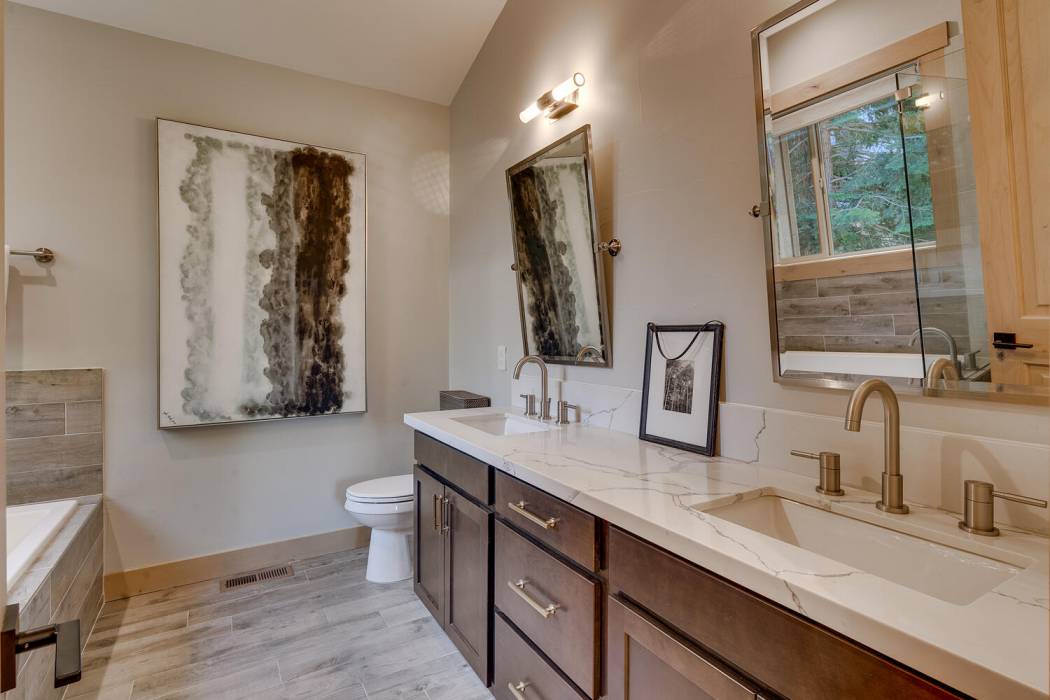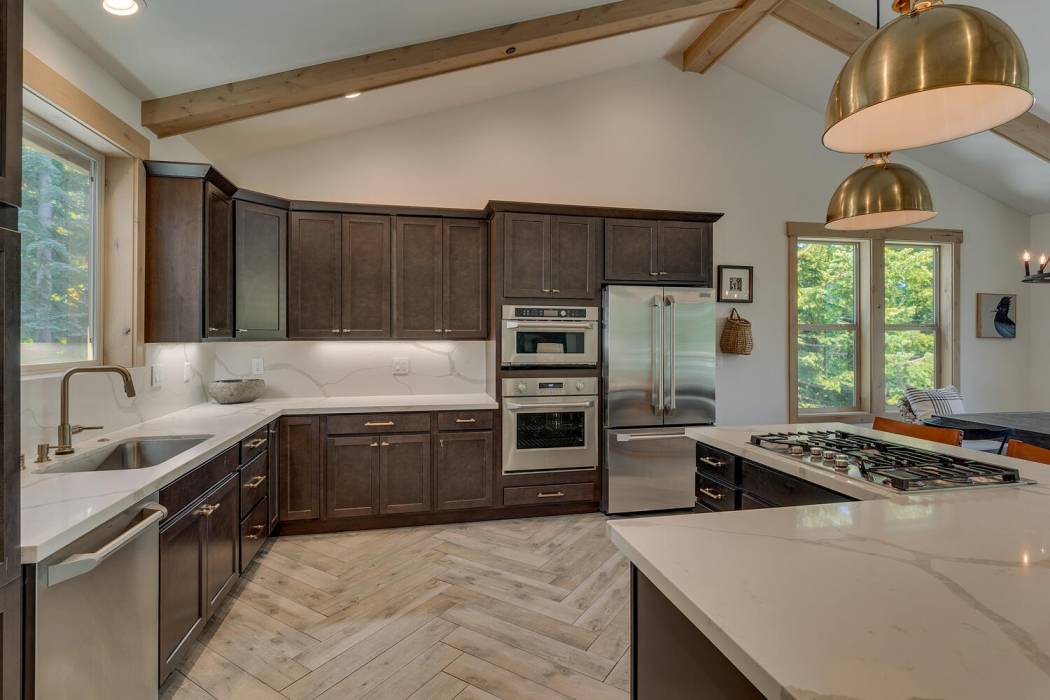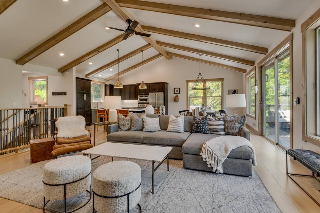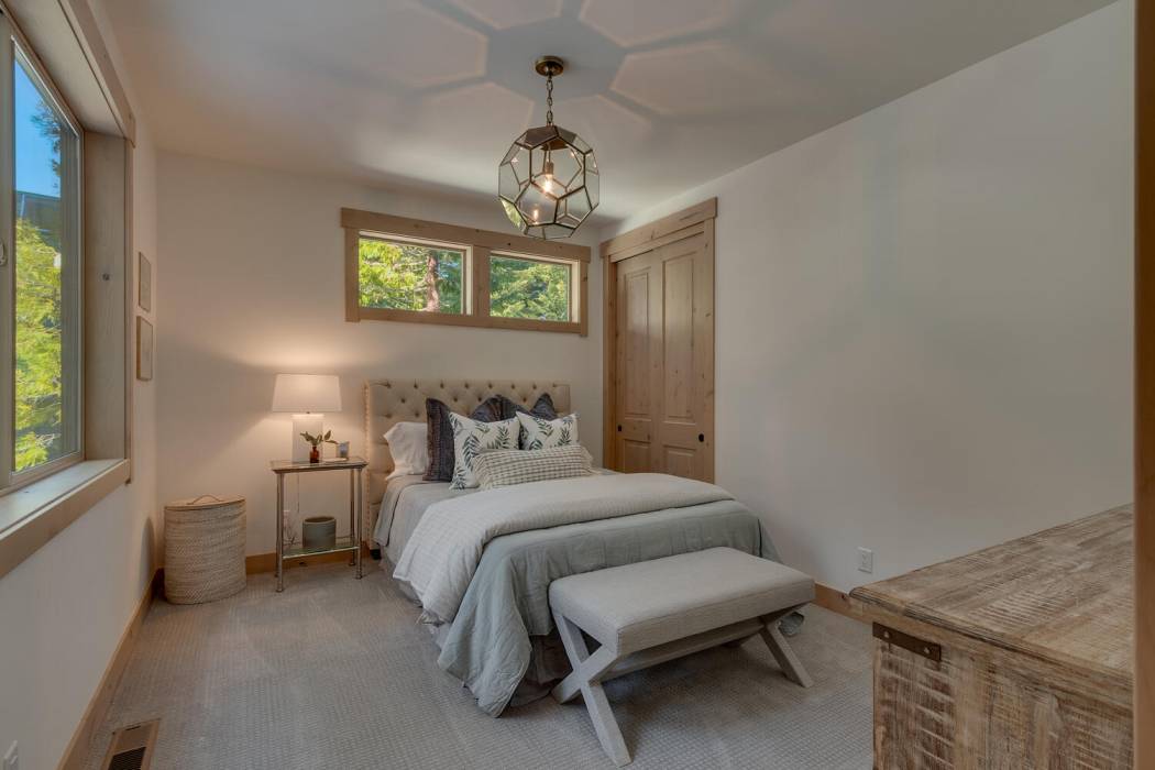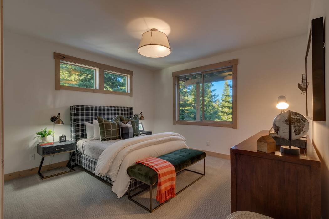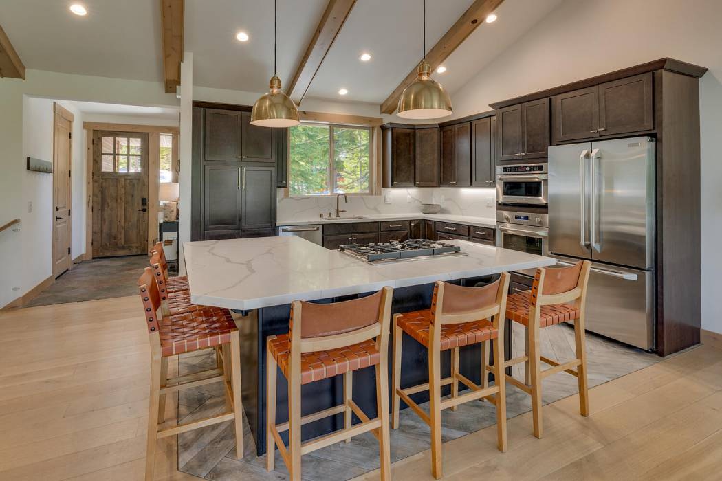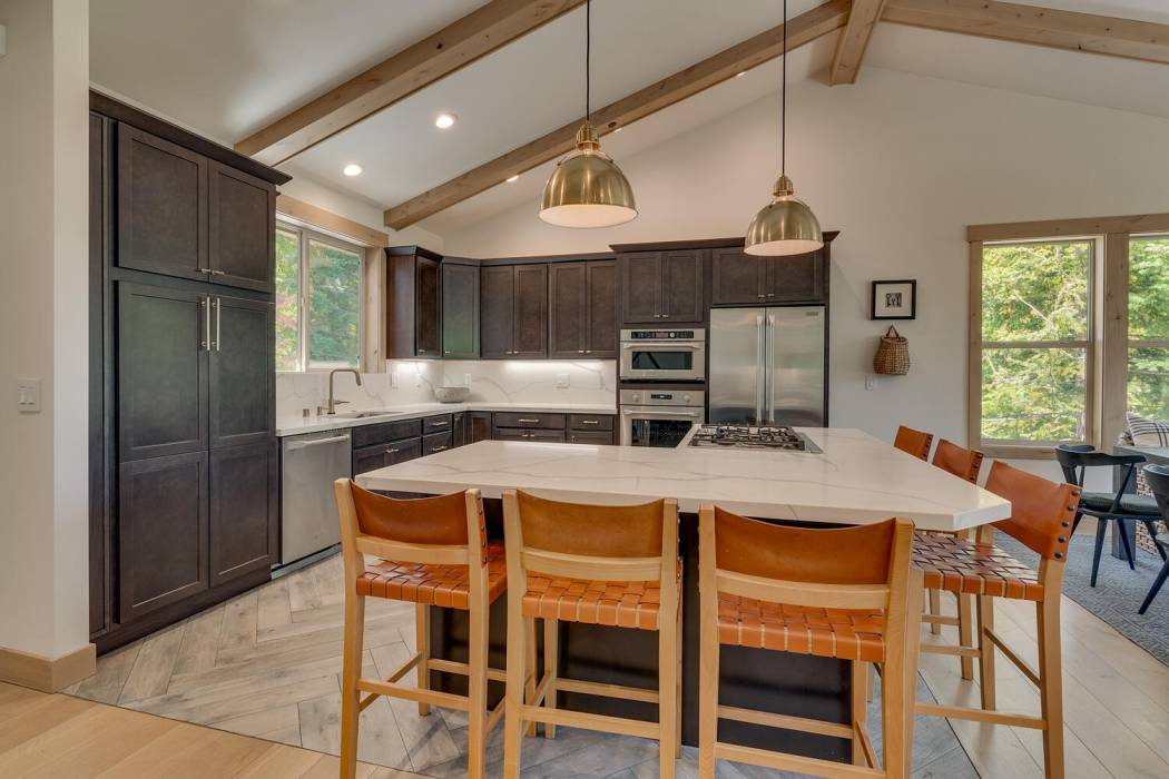 Experience the essence of Tahoe life at Camp Chinkapin. Situated in a peaceful neighborhood and surrounded by towering pines, this exquisitely designed luxury retreat invites you to immerse yourself in the best of mountain living. Discover a modern mountain aesthetic throughout the house, featuring an open floor plan that seamlessly connects the chef's kitchen with the vaulted living dining room. Slide away doors to the large deck create a bright and relaxing space.