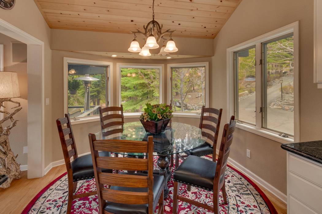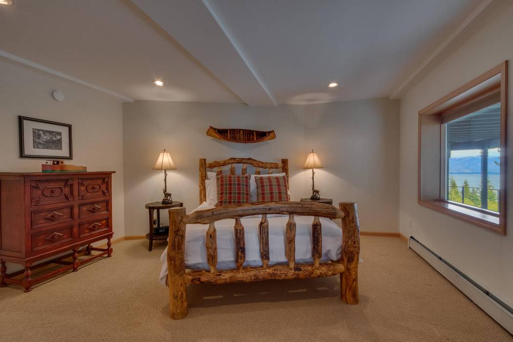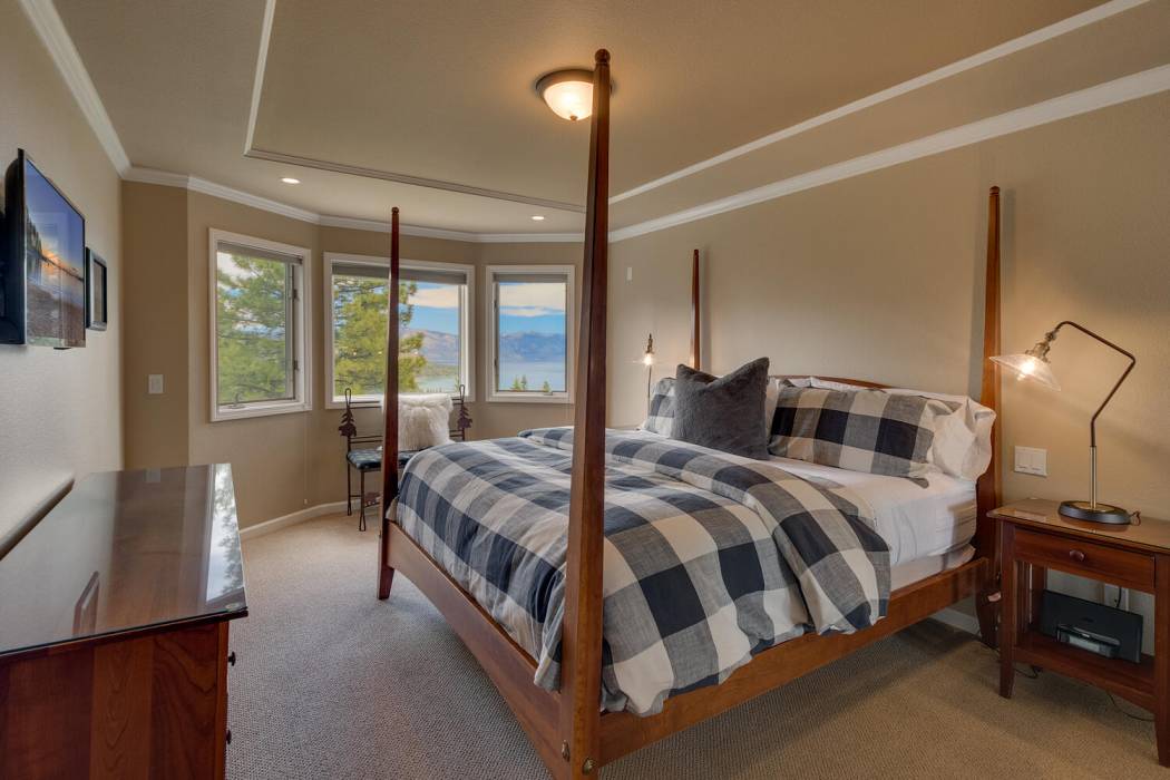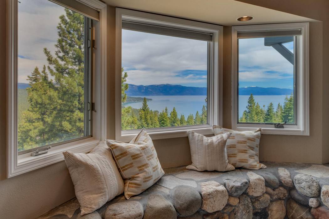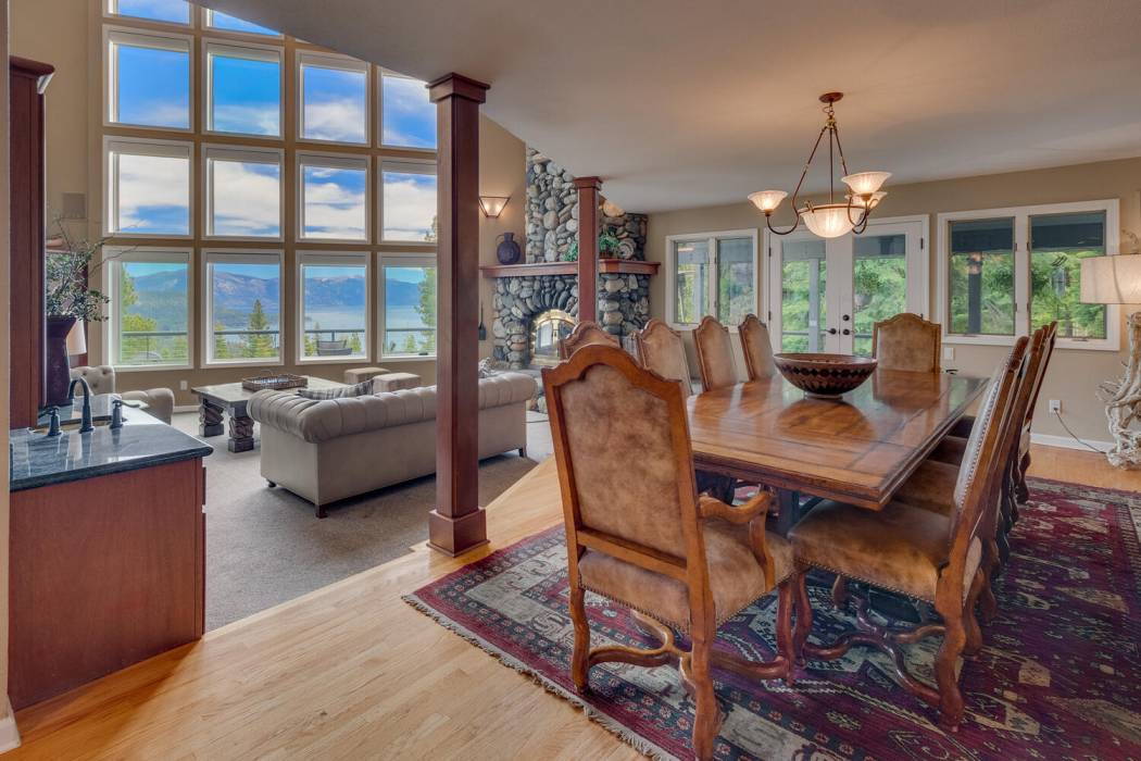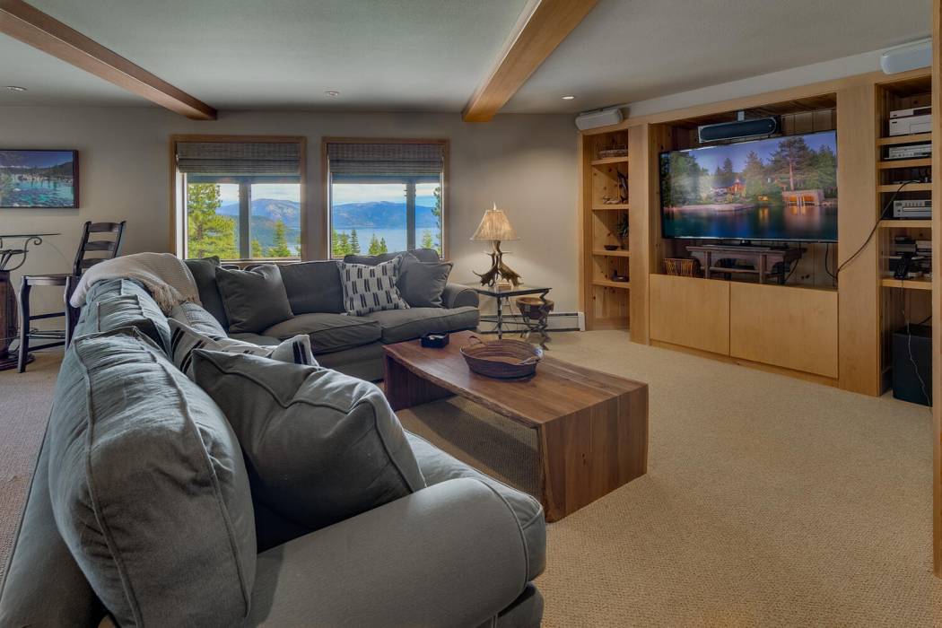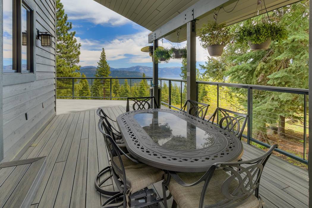 Tucked at the end of a cul-du-sac, the secluded setting and panoramic lake views will take your breath away. Feel a world away without sacrificing the convenience of being just minutes to both Lake Tahoe and to world-class skiing. With National Forest on three sides, plus landscaping that was featured on the Tahoe Garden Tour, including a large lawn, water feature and mature trees, the property welcomes you home to your private retreat. A slate patio with a hot tub invites you to soak under the stars. A large wrap around deck is ideal for hosting feasts with family and friends overlooking Lake Tahoe.