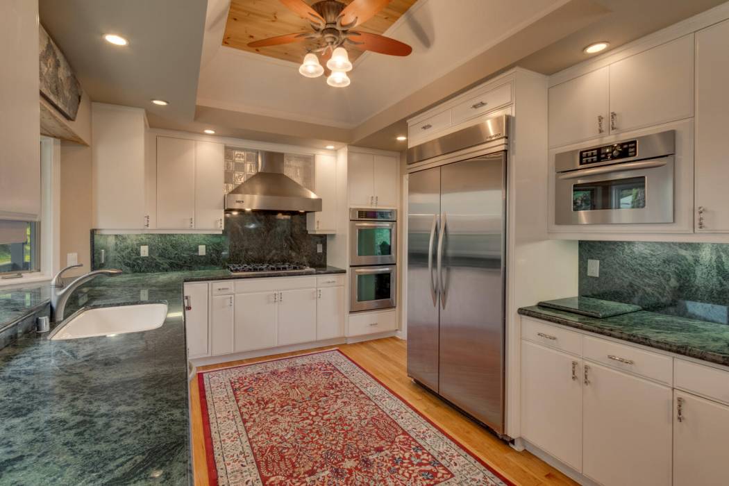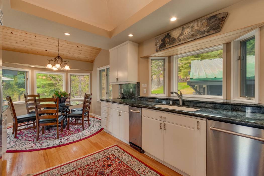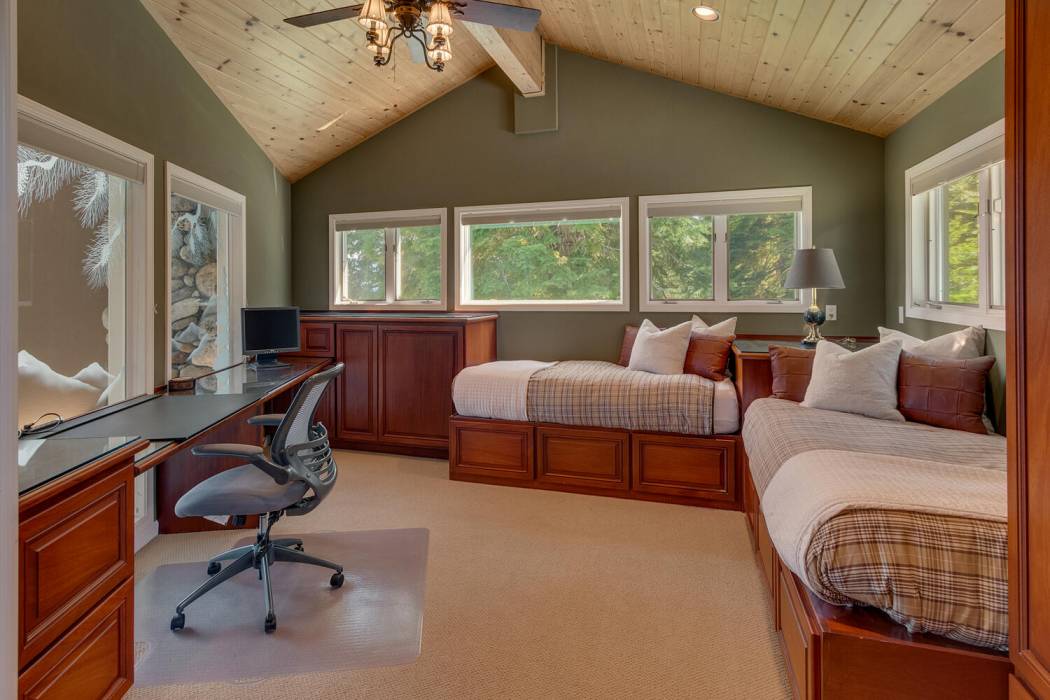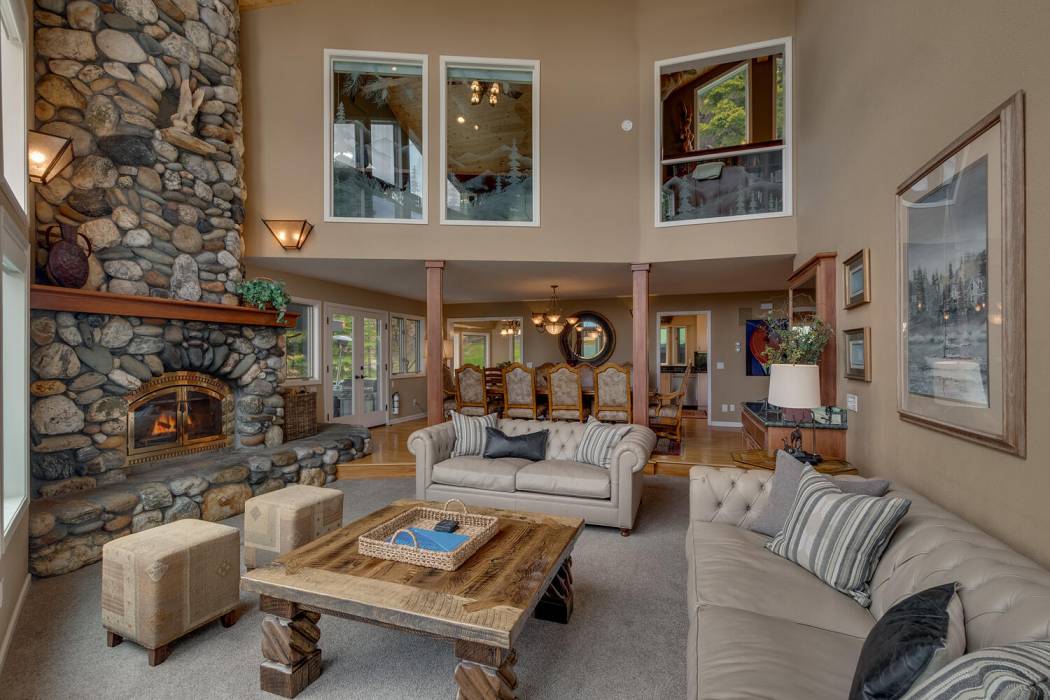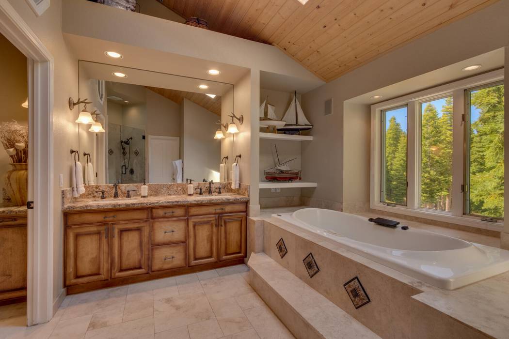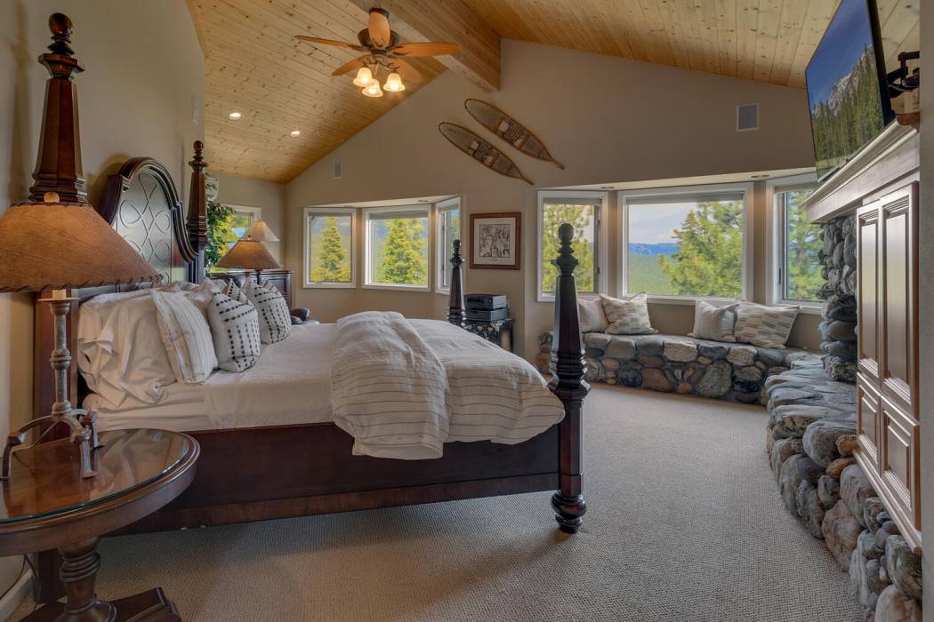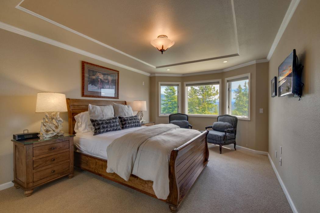 Tucked at the end of a cul-du-sac, the secluded setting and panoramic lake views will take your breath away. Feel a world away without sacrificing the convenience of being just minutes to both Lake Tahoe and to world-class skiing. With National Forest on three sides, plus landscaping that was featured on the Tahoe Garden Tour, including a large lawn, water feature and mature trees, the property welcomes you home to your private retreat. A slate patio with a hot tub invites you to soak under the stars. A large wrap around deck is ideal for hosting feasts with family and friends overlooking Lake Tahoe.