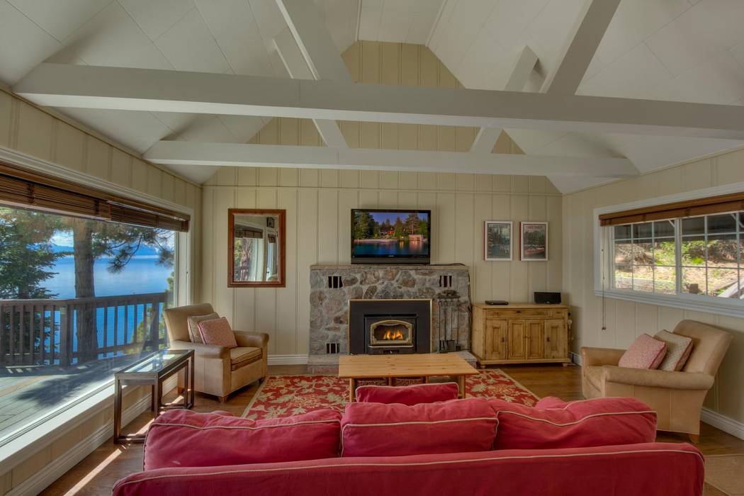 With instant access to Lake Tahoe as well as unmatched views, Glory Days offers an irresistible lakefront location. Authentic interior materials – such as indigenous stone, hardwood flooring, elegant wainscoting and trim mouldings – exude artisanal elegance throughout this classic beach cottage. The living room’s vaulted ceilings and oversized lake view window, and large, stone fireplace create a glorious, open-air gathering space. With its private pier and adjoined patio, two additional sundecks, and hot tub overlooking the Lake, outdoor living is celebrated. The home’s southern exposure offers maximum sunlight, while mature trees offer privacy. Equipped with three buoys and plenty of space for water toys, Glory Days is a boater’s paradise.