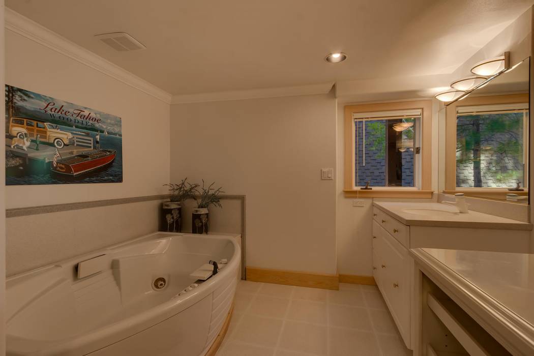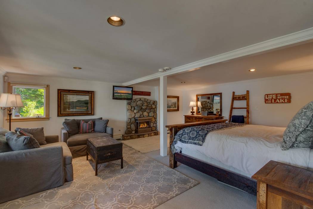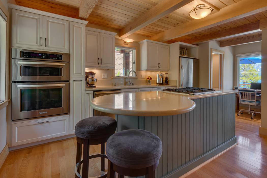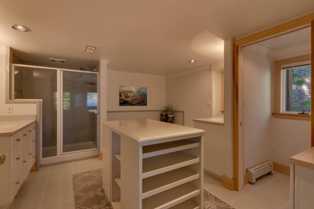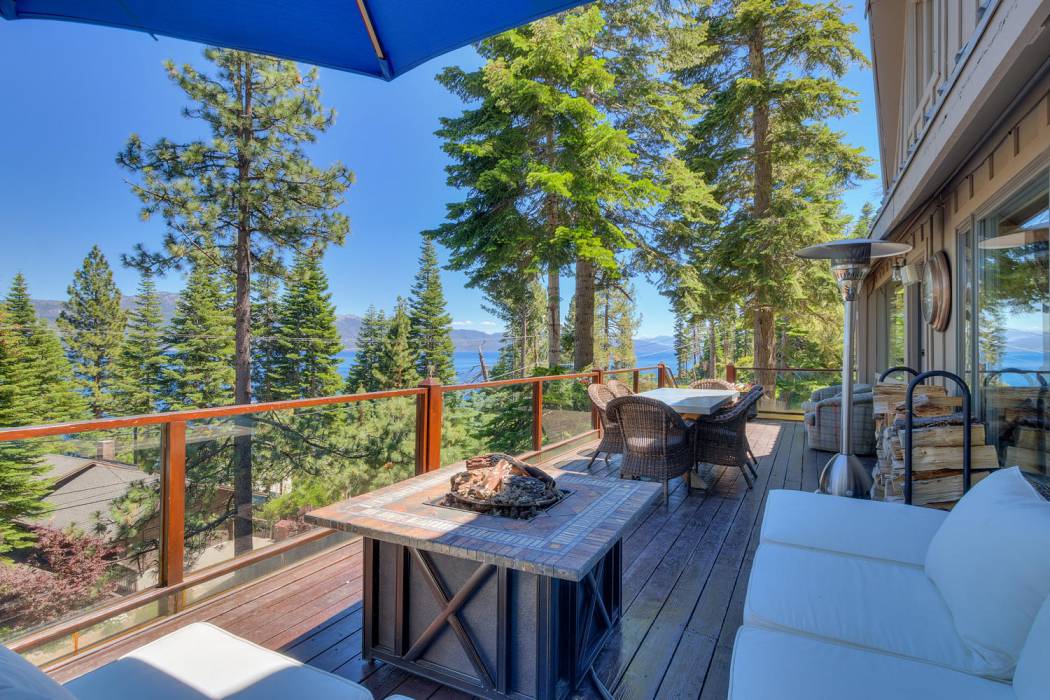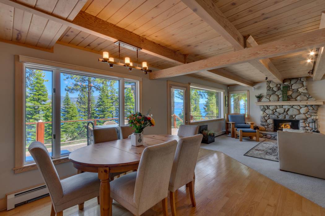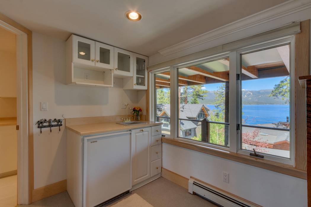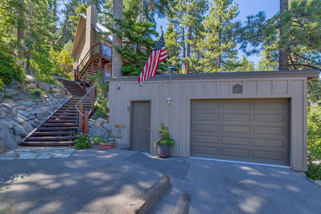 The oversized garage, complete with a Tesla charger, can accommodate 3-4 cars. Relax in the master suite with expansive views of Lake Tahoe. The suite includes a fireplace, wet bar, and an extra large master bathroom. The remodeled kitchen makes entertaining easy with stainless steel Kitchen-Aid appliances.