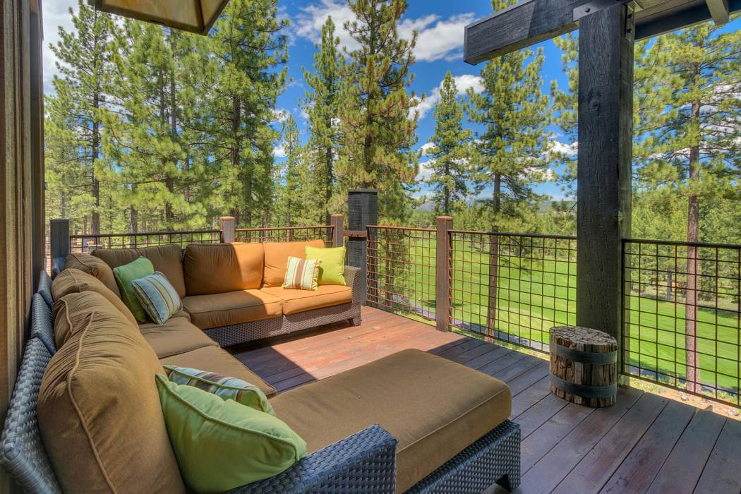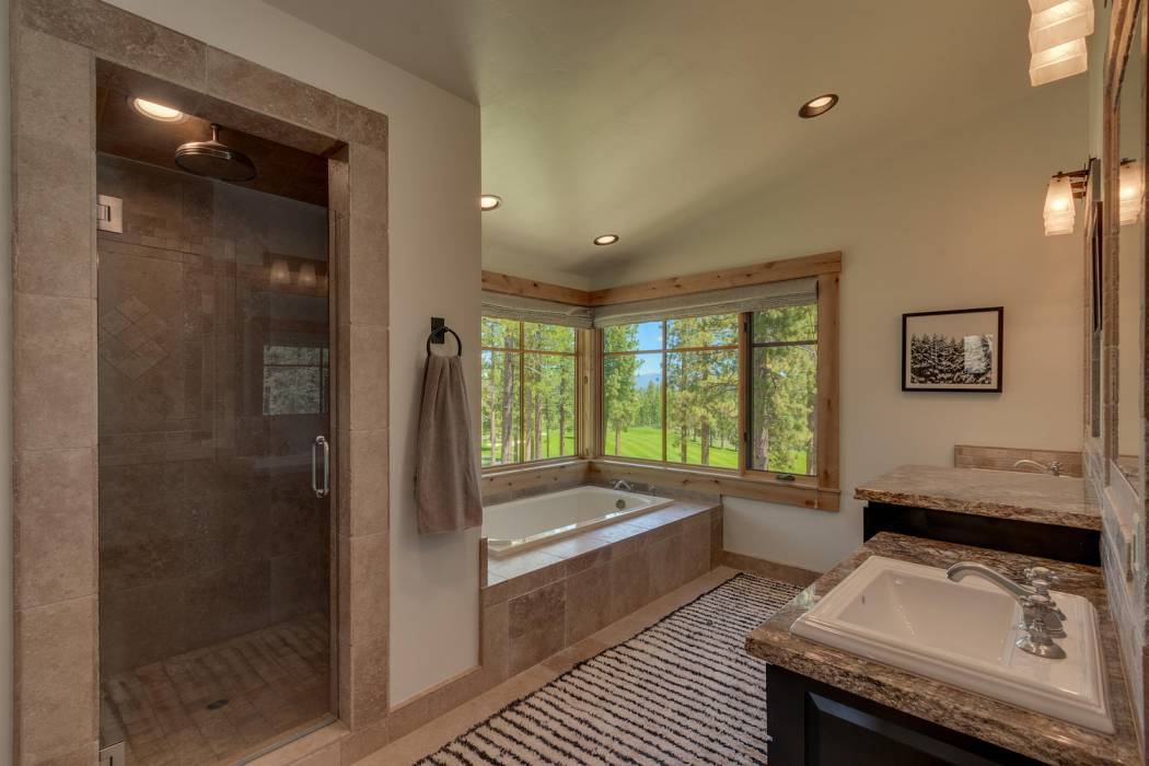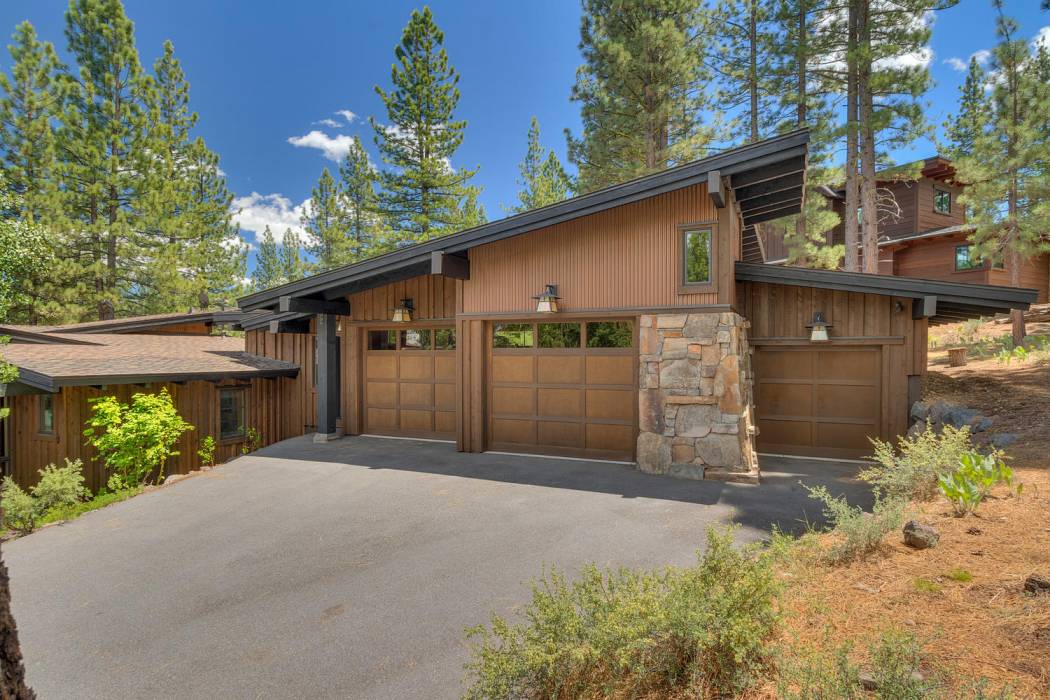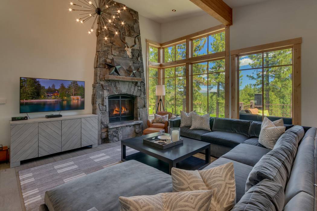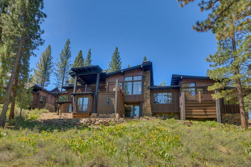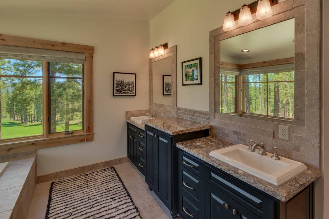 This stunning home, in the Lahontan gated golf community, features breathtaking views of the golf course, mountains, and open space out of every window. The Ward Young-designed home, built by Erhardt Construction, showcases the Old Tahoe style materials with high-end finishes and blends modern design. Large windows bring in abundant sunlight creating a bright and spacious setting.
