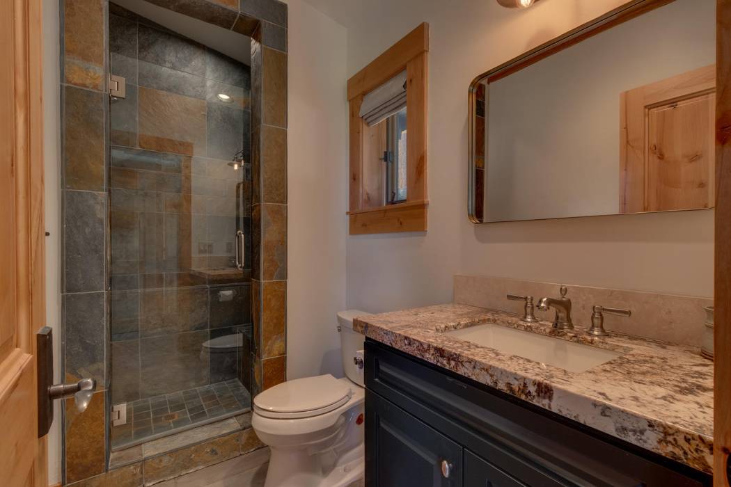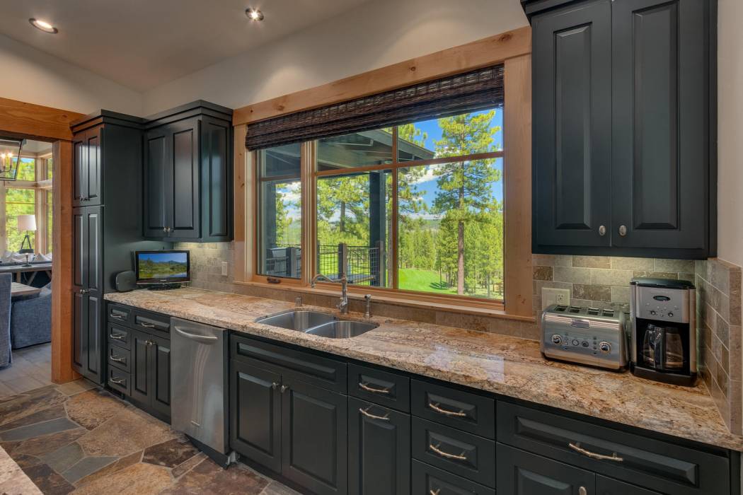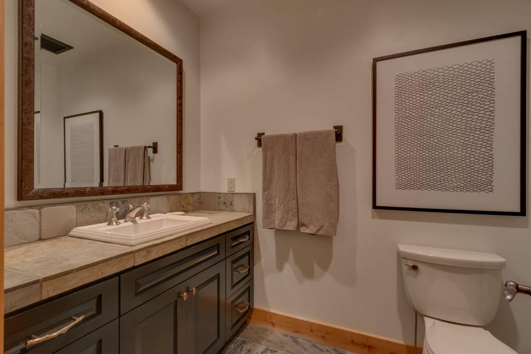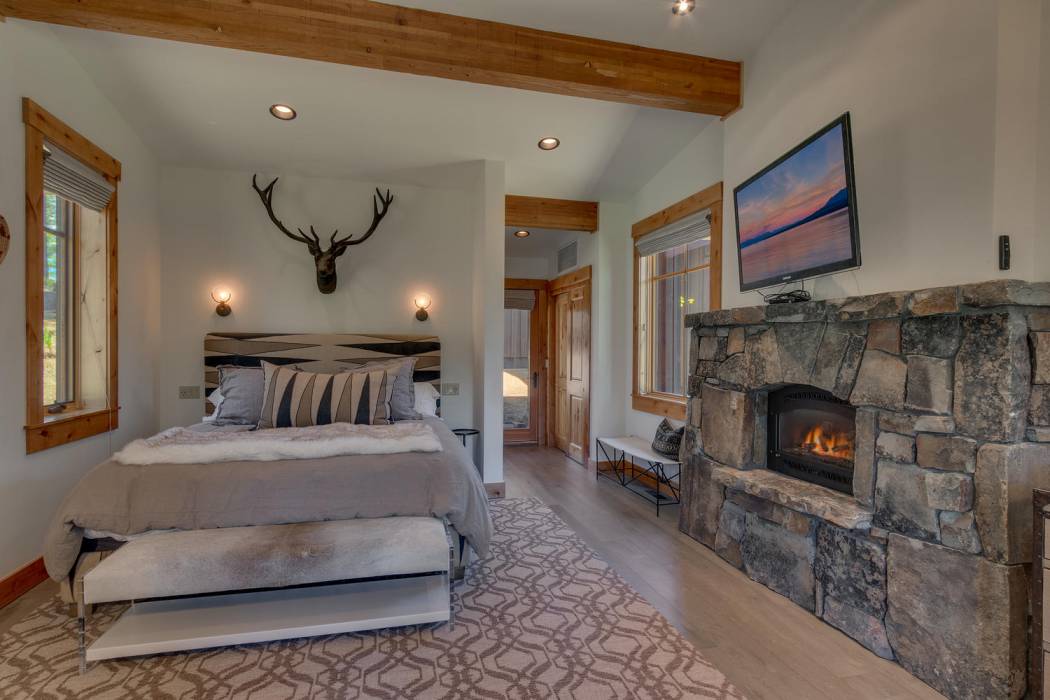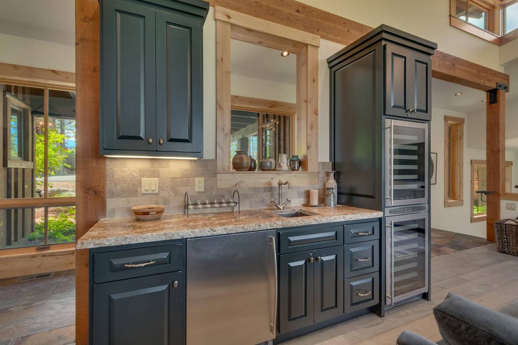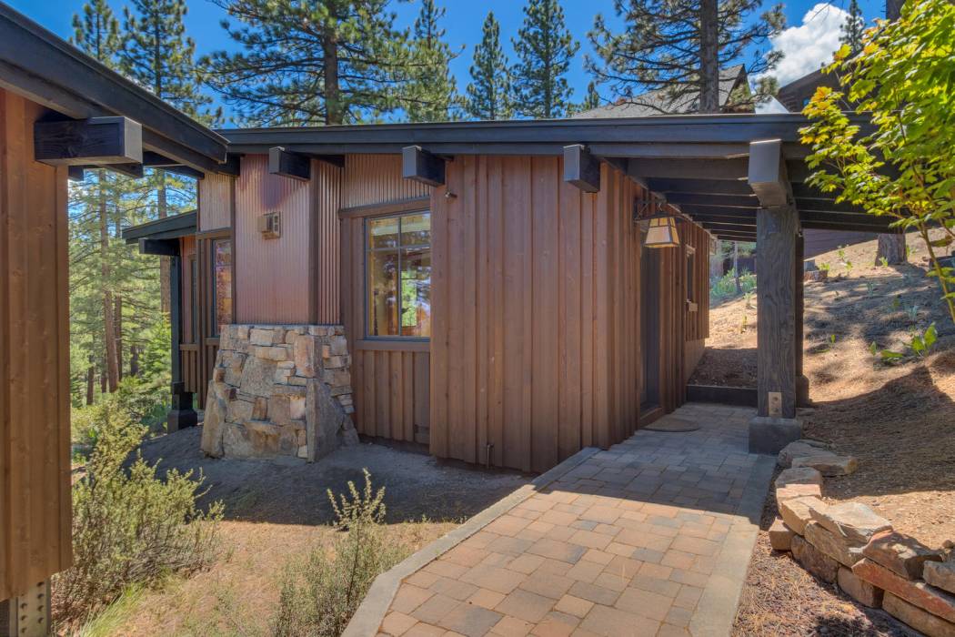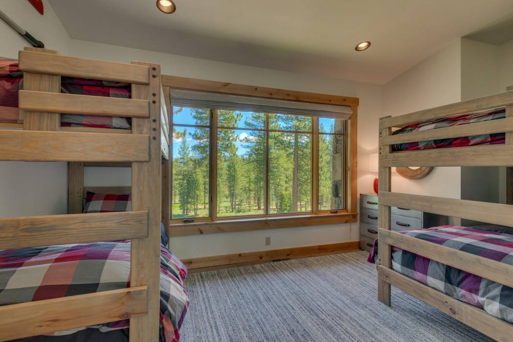 This stunning home, in the Lahontan gated golf community, features breathtaking views of the golf course, mountains, and open space out of every window. The Ward Young-designed home, built by Erhardt Construction, showcases the Old Tahoe style materials with high-end finishes and blends modern design. Large windows bring in abundant sunlight creating a bright and spacious setting.