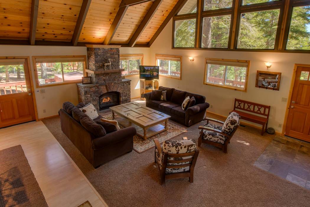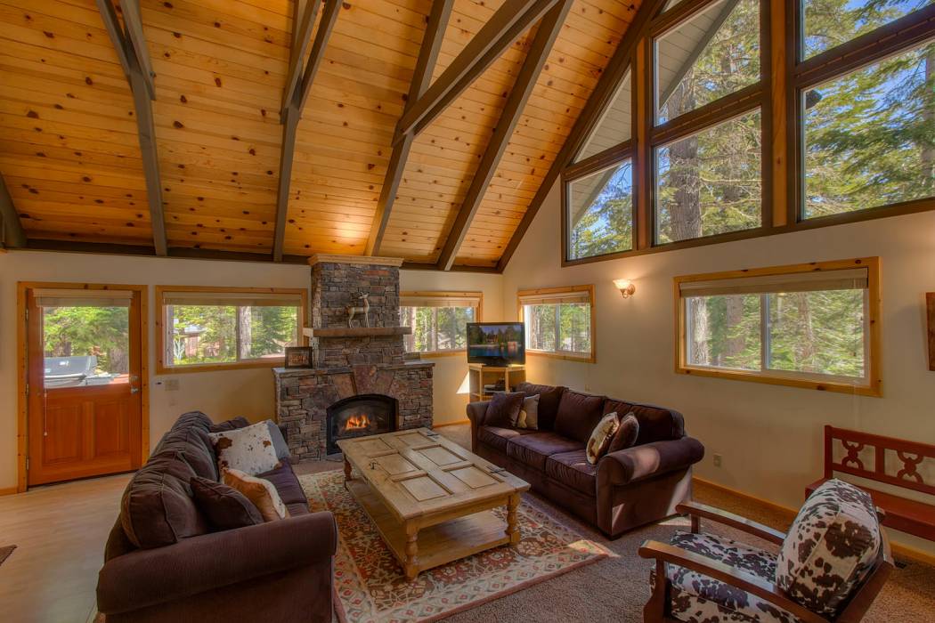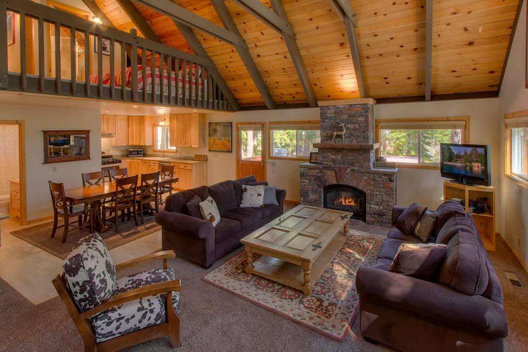 With vaulted ceilings, walls of windows and a wrap around deck, this Cedar Flat cabin offers a spacious feel and abundant light to enjoy the private wooded setting. Only three miles from Tahoe City and just blocks from biking, hiking and cross-country ski trails, the central location is ideal year round.
