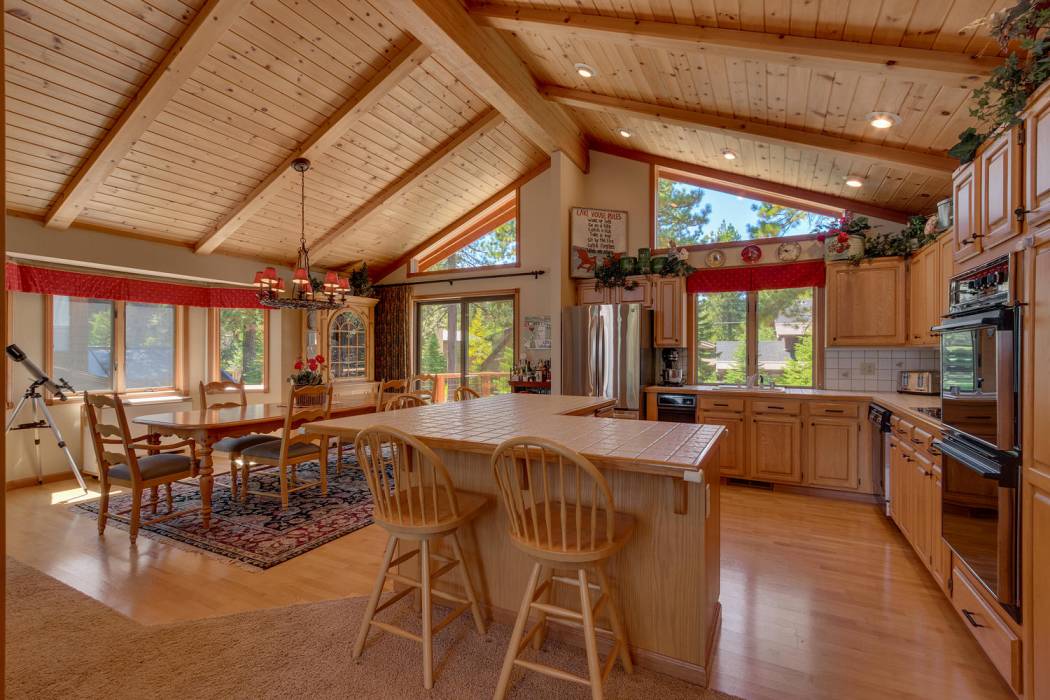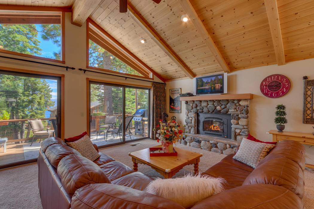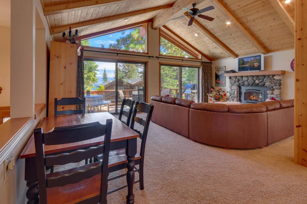 This Dollar Point family home is perfect for enjoying Tahoe year round. With abundant sunlight, floor-to-ceiling windows, and cozy fireplace, the open great room is an ideal warm space for enjoying family time. A spacious front deck with filtered lake views is a charming setting for enjoying al fresco dining, in this quiet neighborhood setting. Two ensuite bedrooms offer convenience and privacy.