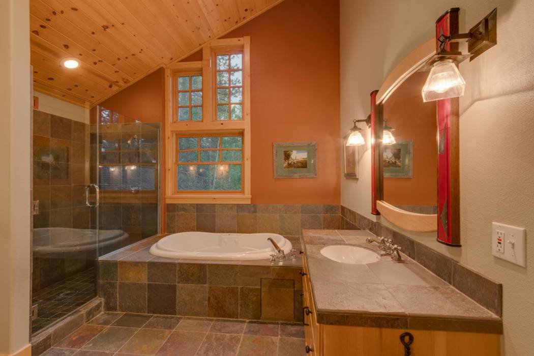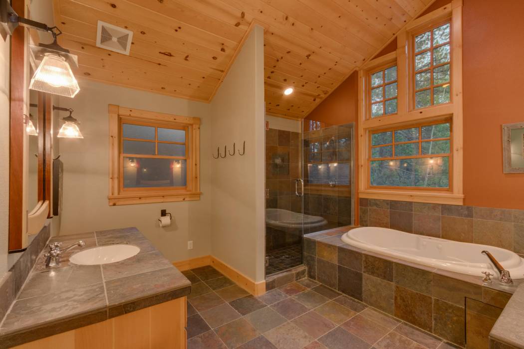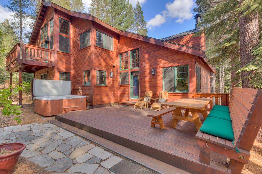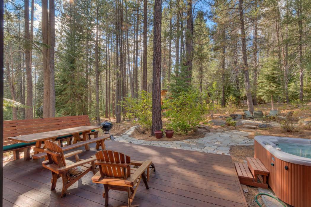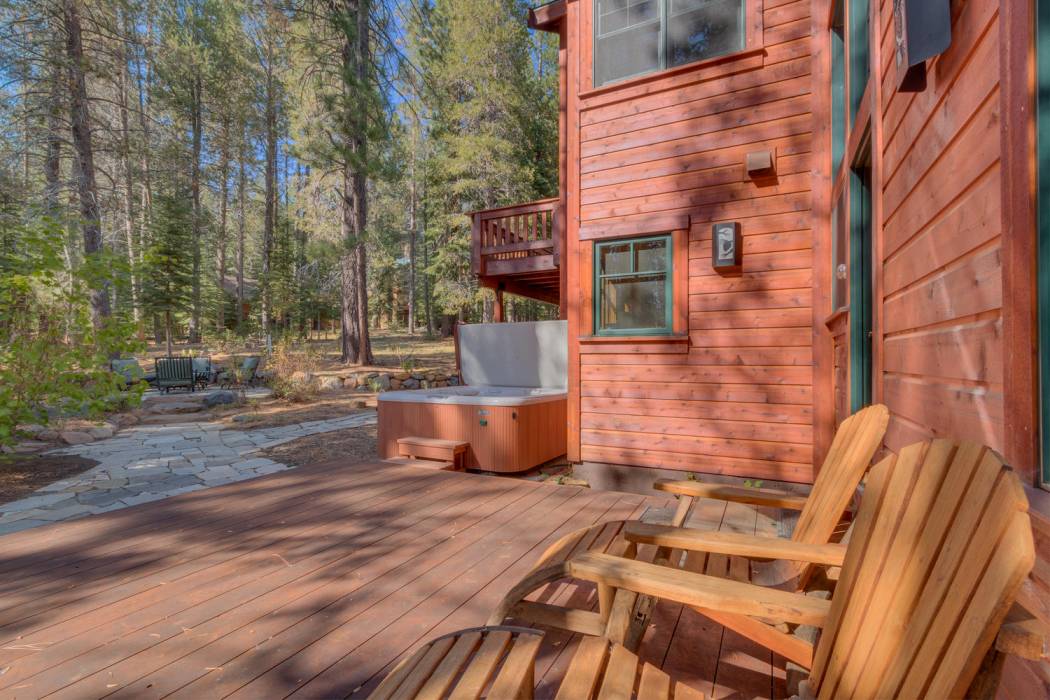 Enjoy days in the secluded backyard with a deck, patio area, 6-person hot tub, and a site-built tree house for the kids. Inside, the warm interior and open floor plan invite you to appreciate Tahoe time. The custom fireplace and wood-clad windows highlight the attention to detail throughout the home. The kitchen features high-end appliances. The large master bedroom and California closets create a spacious feel.