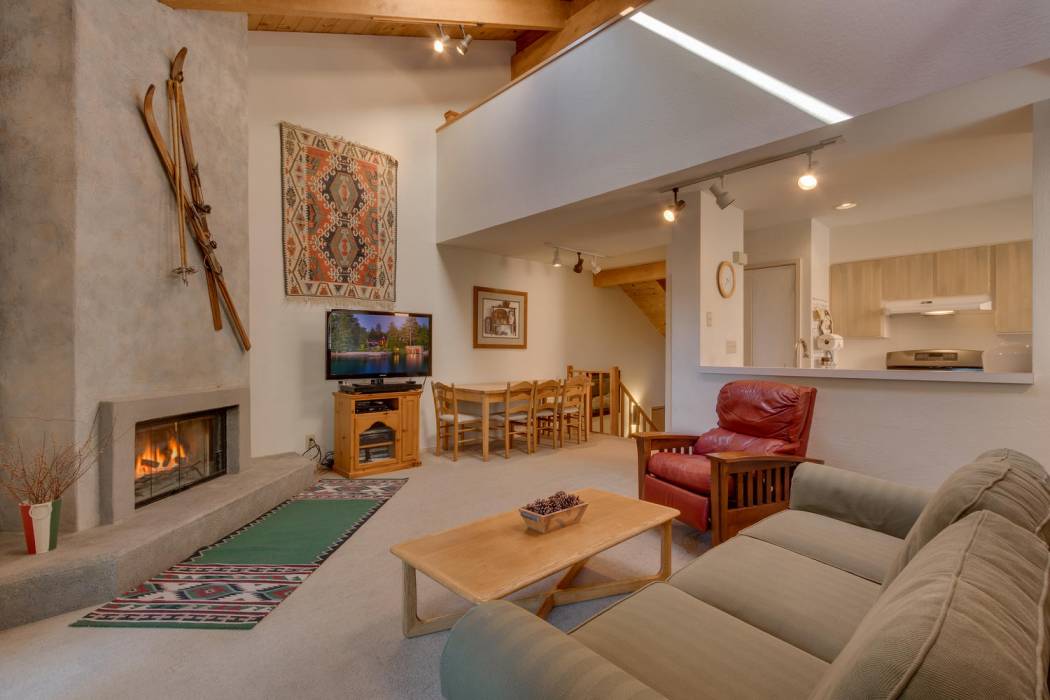 This 3-bedroom & 2-bath unit includes a bonus loft space which can serve as an additional guest room, currently outfitted with two twin beds, an office, or a family room. The wood fireplace adds warmth and comfort to the space, and is a special feature to this unit as many units in the community do not include a fireplace. The covered deck offers peek lake views as you soak in summer days.