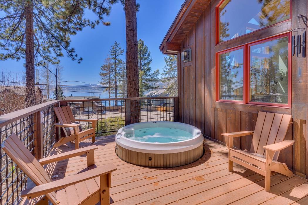 Centrally located on Tahoe's North Shore, this exquisite lakeview home is a warm and inviting base camp for all your Tahoe fun. Large windows, abundant natural light and open floor plan create a bright and comfortable space. A large deck with a hot tub or the gas fire pit are both ideal venues for spectacular sunrises and sunsets over Lake Tahoe. The stylish gourmet kitchen with high-end appliances is both a chef's delight and a welcoming setting to gather and socialize.