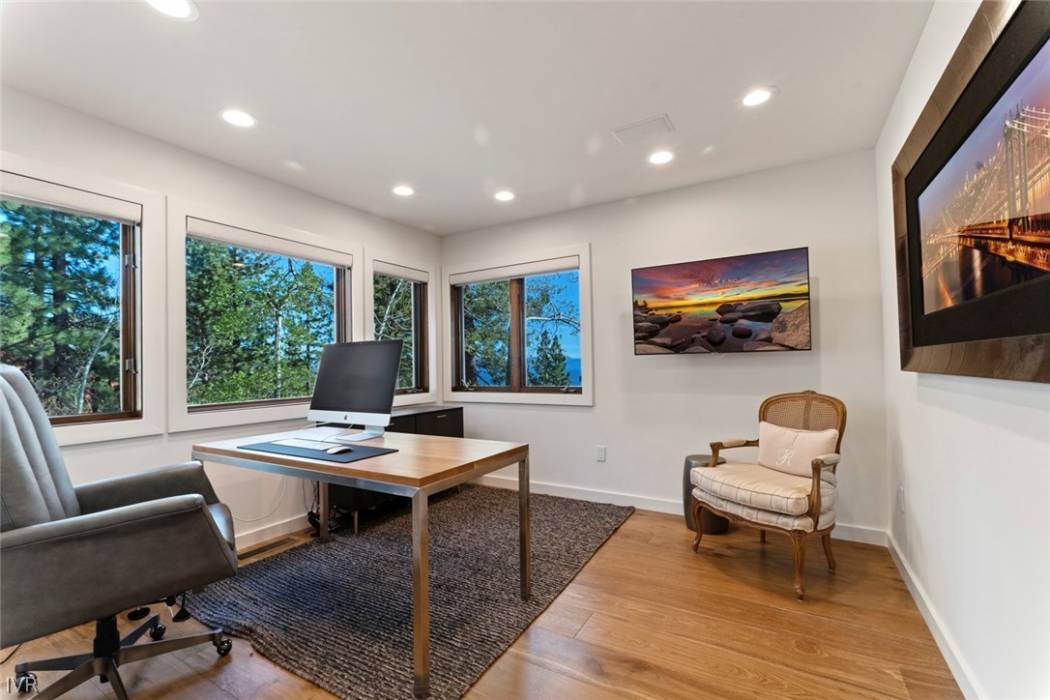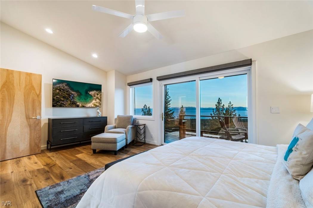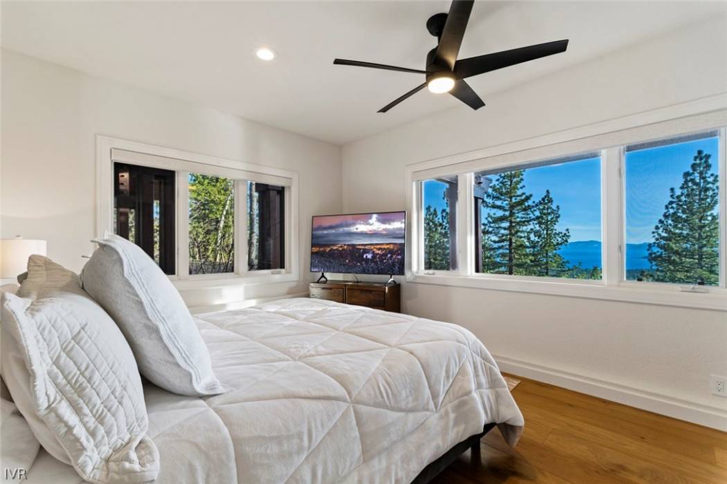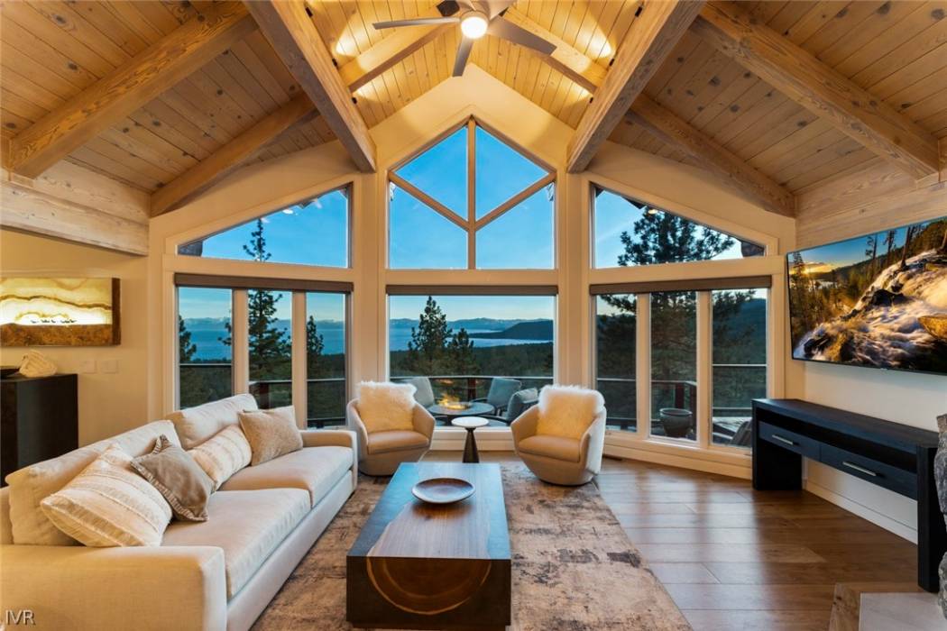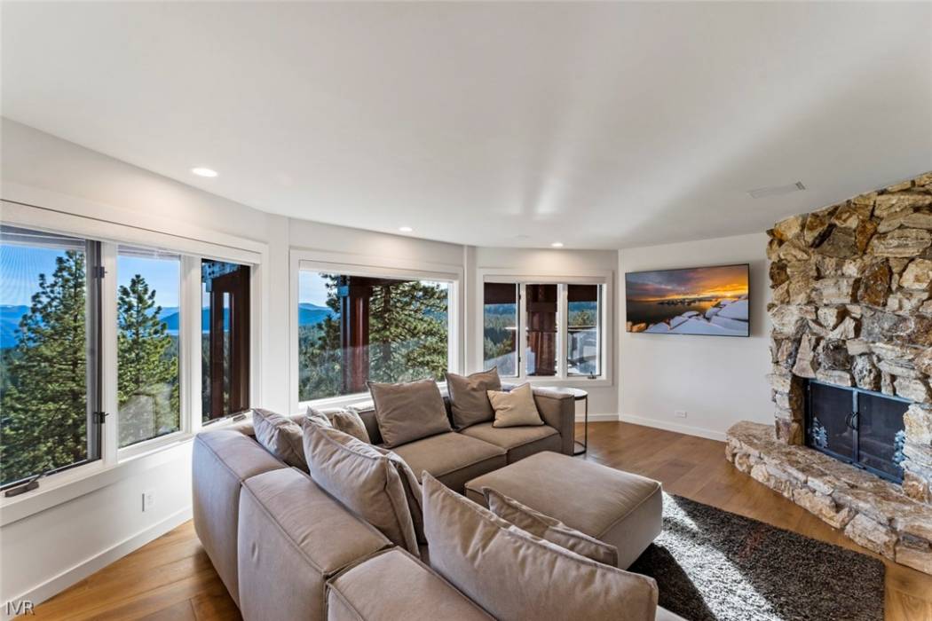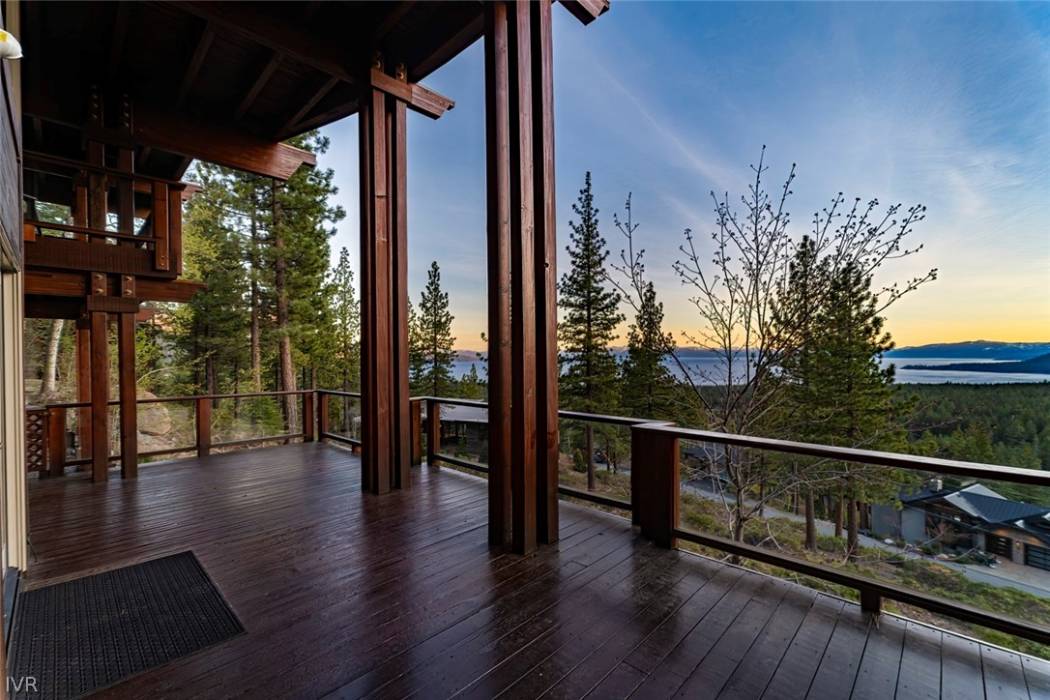 Captivating panoramic lake views from nearly every room! This Luxury Modern Craftsman styled home is situated on a 1.04 acre parcel on the prominent Eastern Slope of Incline Village. Boasting 4,684sf, 5 bedrooms, 4.5 bathrooms, & 2 car garage, this luxurious estate was designed for refined buyers. Upon entering, one is immediately greeted by awe-inspiring vaulted ceilings & floor to ceiling glass perfectly framing views of iconic Lake Tahoe. The upper deck spans the entire back of the home & is perfect for entertaining while sun gazing & is separately accessible from the: kitchen, dining room, and main bedroom, all on the street level. The main bedroom is connected to a spacious chic bathroom with a walk in closet, a freestanding tub, stall shower, TV, & separate his/her vanities with bluetooth mirrors. The middle level consists of family room with a second fp, 3 more bedrooms with access to private balconies, 2 more bathrooms, an office, fitness room, & a three row movie theatre.
